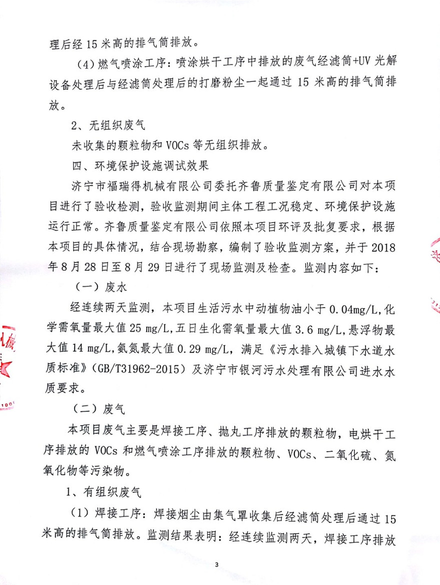 濟(jì)寧市福瑞得機(jī)械有限公司年產(chǎn)2600臺(tái)小型機(jī)械及12000噸機(jī)械配件加工項(xiàng)目(廢氣、廢水)竣工環(huán)境保護(hù)驗(yàn)收意見