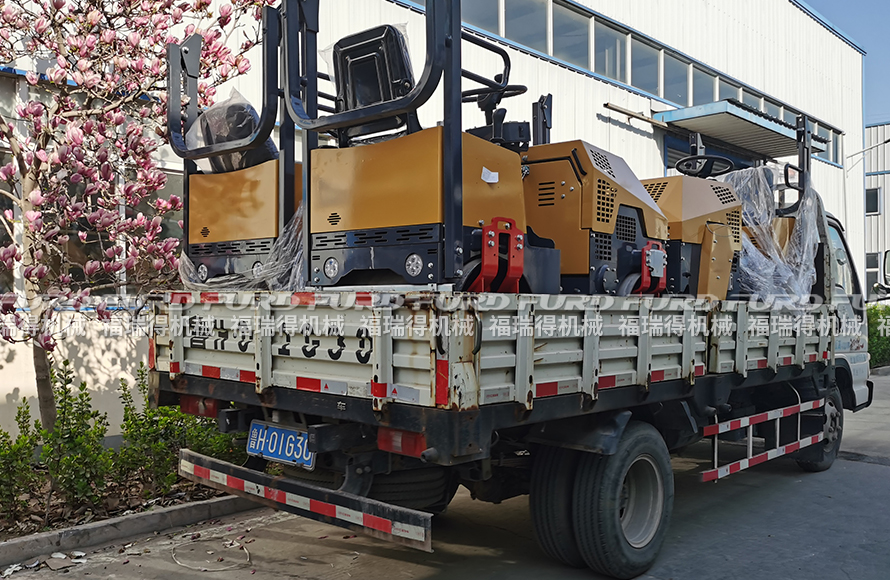 4月23日,福瑞得機械將日照客戶十天前訂購的7臺1噸全液壓振動壓路機裝車發(fā)走。