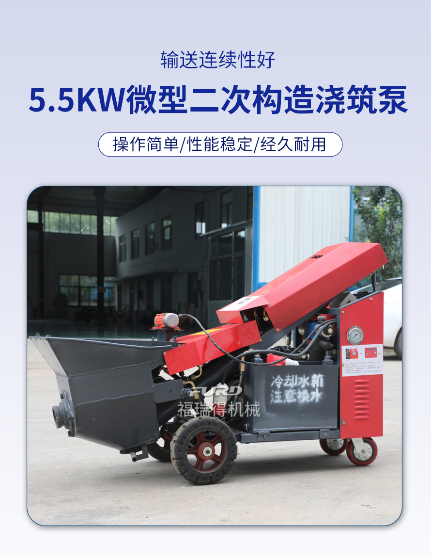 福瑞得二次結構澆筑泵適用于商品房、農(nóng)村建房,打二次構造柱,圈梁等,是您澆筑的好設備。電機功率小,體積小,重量輕,料斗可升降,真正能提高您的施工效率,是人工澆筑的幾十倍。